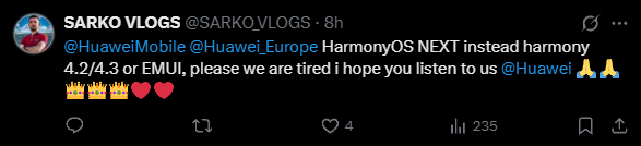 许多网友在帖子评论区喊话,希望用上鸿蒙操作系统,而非EMUI。
